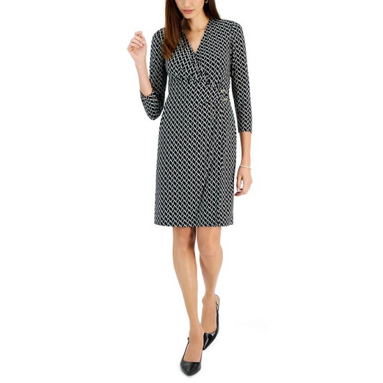 Faux-wrap details add interest to this dress by Kasper, making it the perfect transitional piece from day to night.