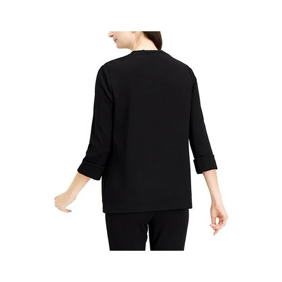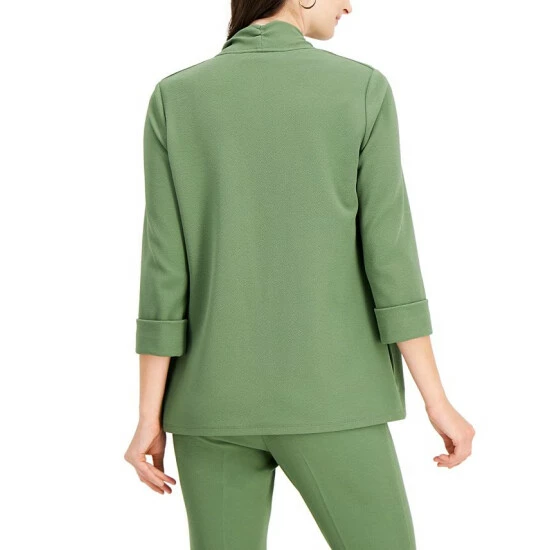 Perfectly sized for a petite frame, this open-front cardigan topper from Kasper is elevated by subtle texture and a swingy draped design.