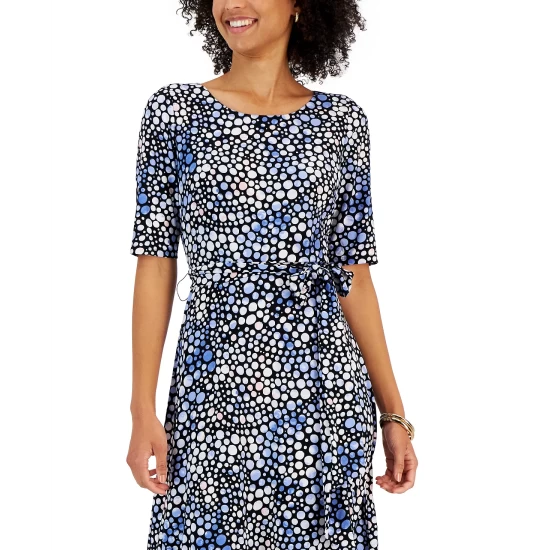 Effortlessly enviable style is yours in this petite midi dress from Kasper designed with short sleeves and a gorgeous print.