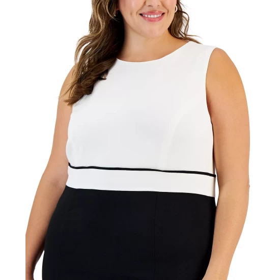 A sleek belt defines the waistline of this petite tweed sheath dress from Kasper, a sleeveless pick that’s perfect for the office.