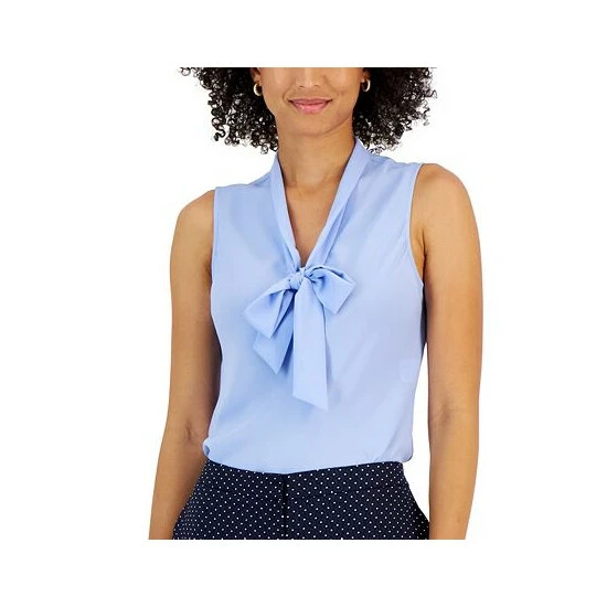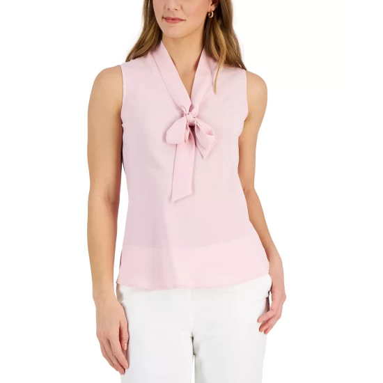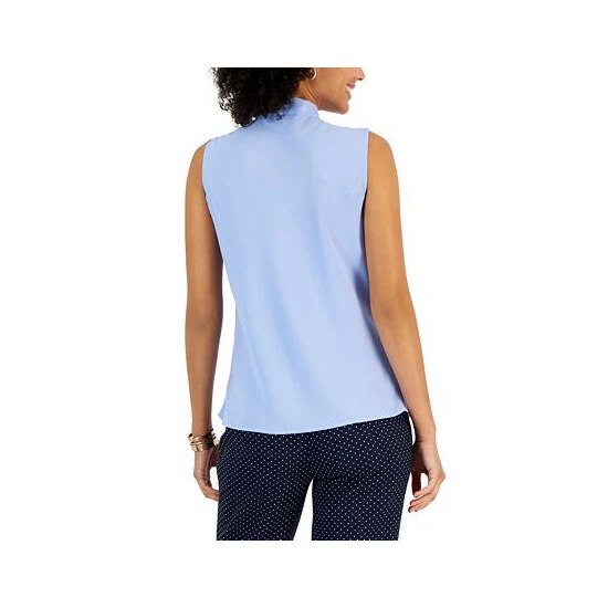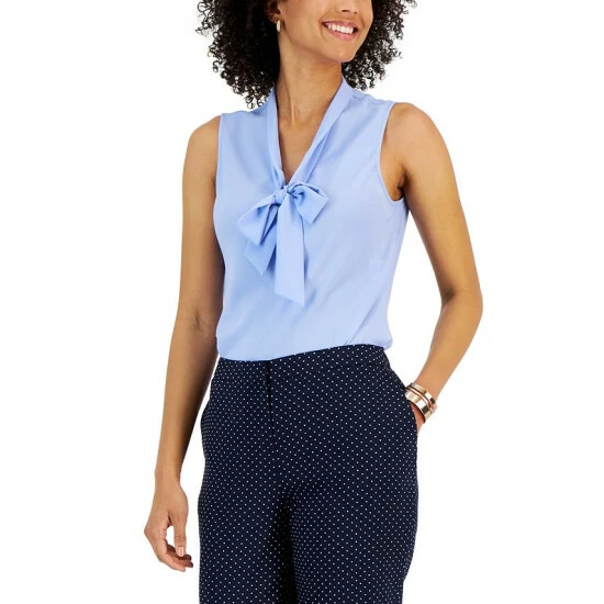 Put together a polished career look starting with this petite sleeveless top from Kasper designed with a tie at the neckline.