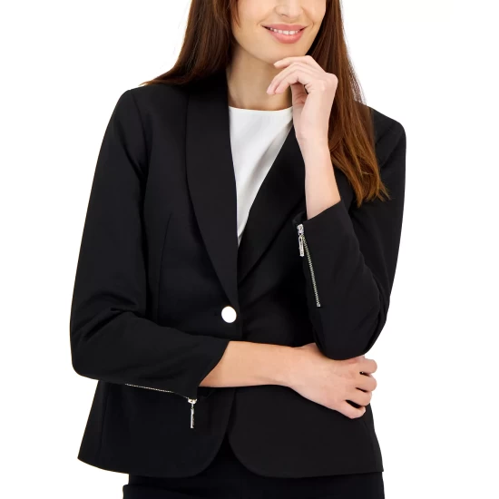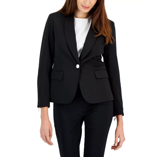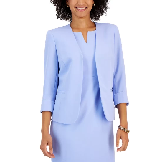 Give your look a polished layer with this petite jacket from Kasper designed with an open front and rolled sleeves.