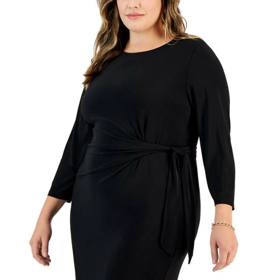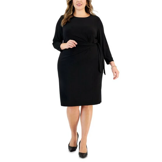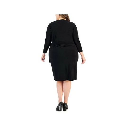 Kasper brings us a plus size piece that is timeless and classic, the perfect addition to your workwear collection, this midi dress features a sleek faux-wrap design for an effortlessly sophisticated look.