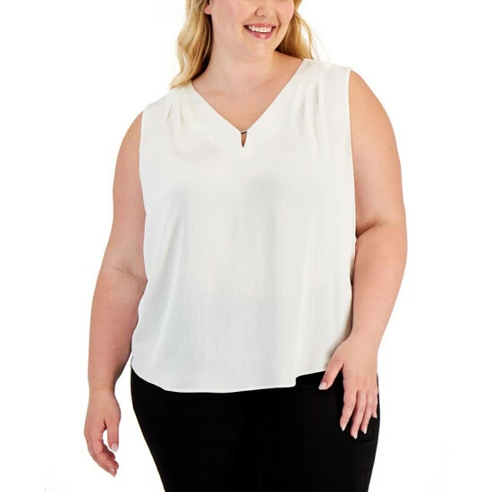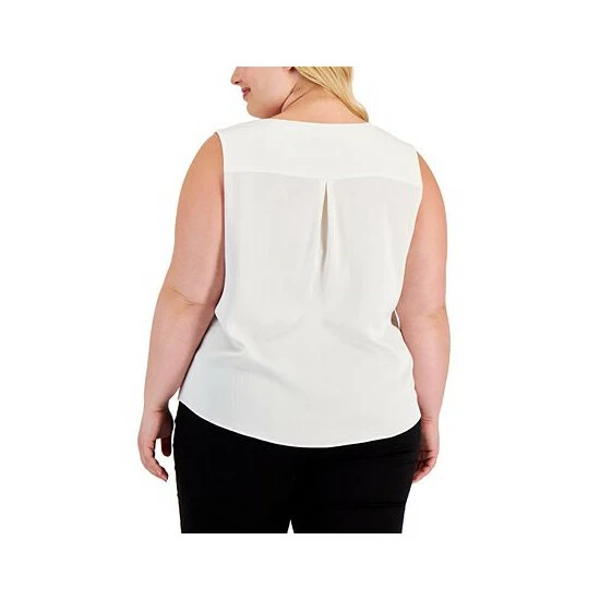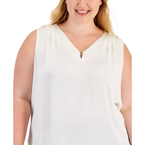 A tiny bar embellishment highlights the classic V-neck on this plus size camisole from Kasper.