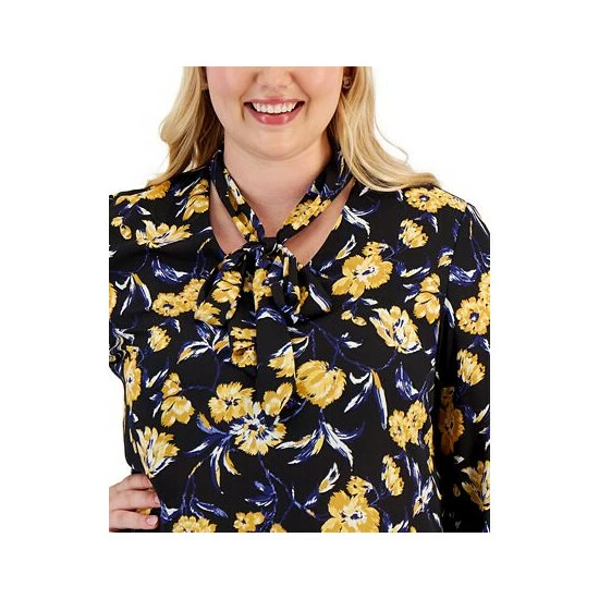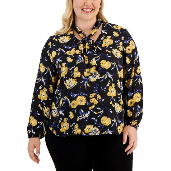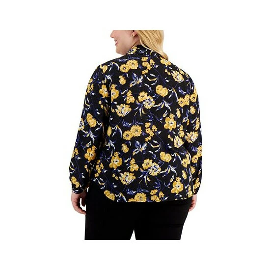 Bold prints sit atop this elegant V-neck blouse from Kasper.