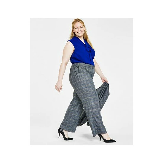 Comfortable and chic? Consider it done with Kasper’s plus size glen plaid pull-on trousers.