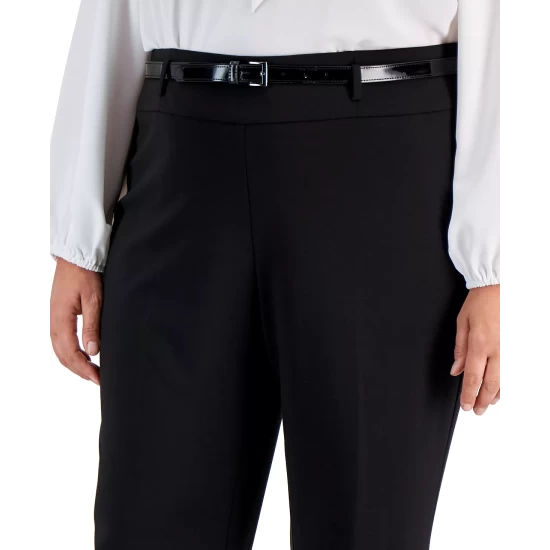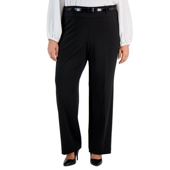 Kasper brings us a classic staple- these plus size bootcut pants, with an attached belt, are the perfect building-block and will add instant polish and style to many workweek ensembles.