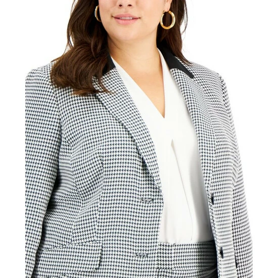 Top off your looks with this houndstooth plus size jacket from Kasper, featured with button closures at the front for endless styling options.