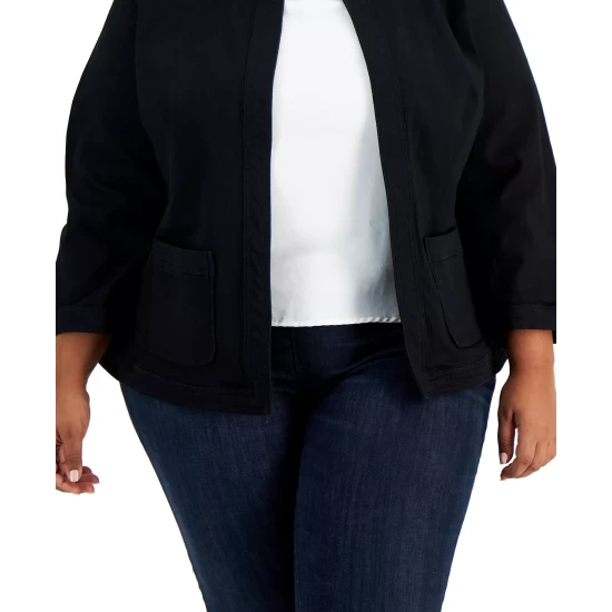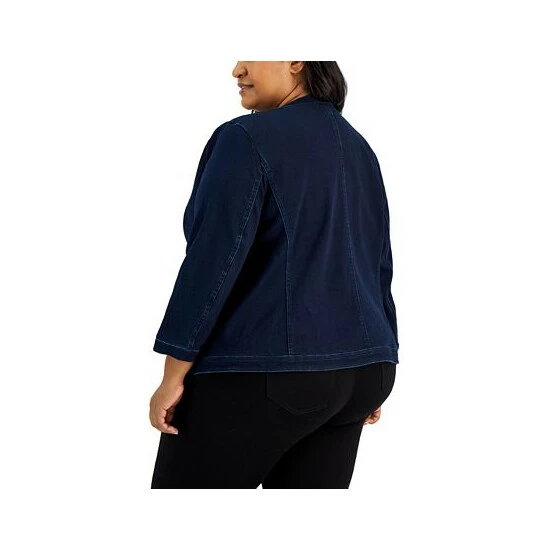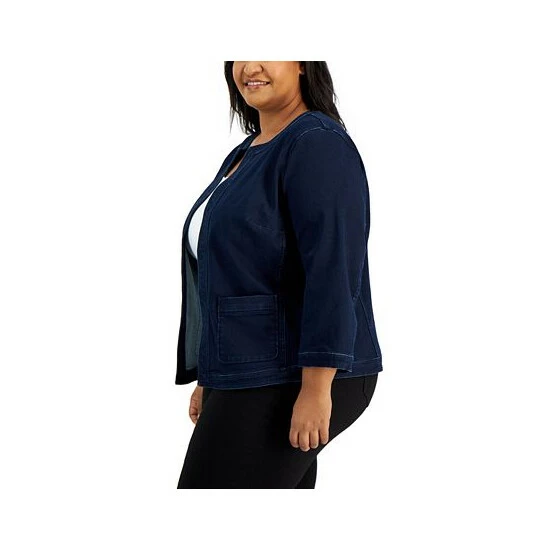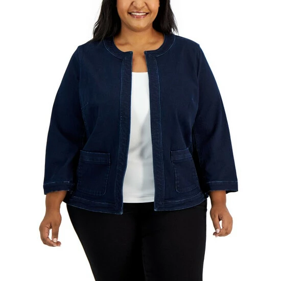 Shake things up in this plus size denim blazer from Kasper, featured with an open front for endless styling options.
