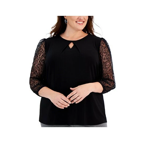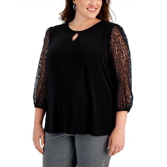 Sophistication and simplicity are elevated with a lavish lace sleeve, this plus size top will refresh your workweek wardrobe.