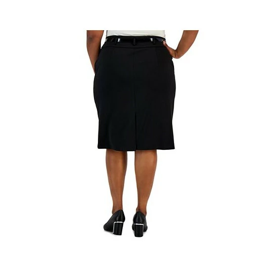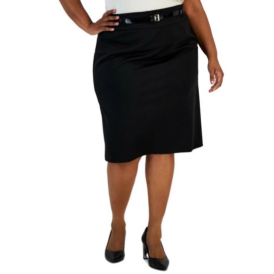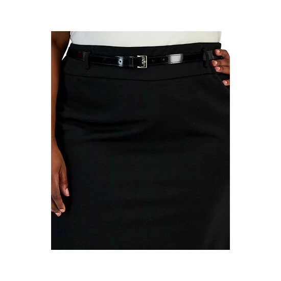 Kasper brings us a plus size skirt that is a professional staple for any workwear collection, the classic pencil silhouette is finished with a sleek patent belt, this skirt is the perfect starting block for many weekday ensembles.