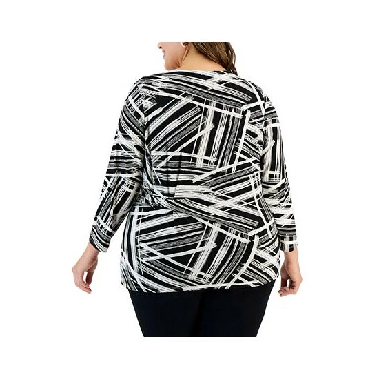 Tied at the waist this plus size Kasper blouse offers a form-flattering finish and features a sleek and polished print.