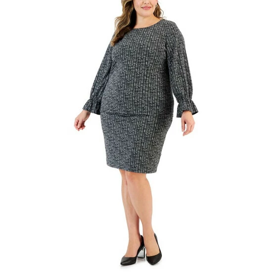 Kasper combines coverage with sleek and sophisticated design; this plus size blouse features a stylish flared-cuff sleeve, whilst the matching skirt showcases the timelessly classic pencil silhouette, both are finished in a perfectly polished print.