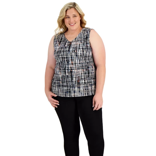 Kasper has your work-approved style covered with this plus size top designed with a pleated keyhole neckline.