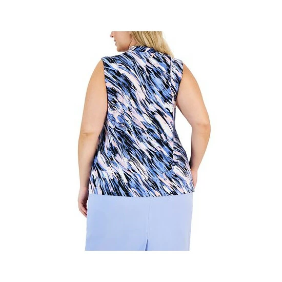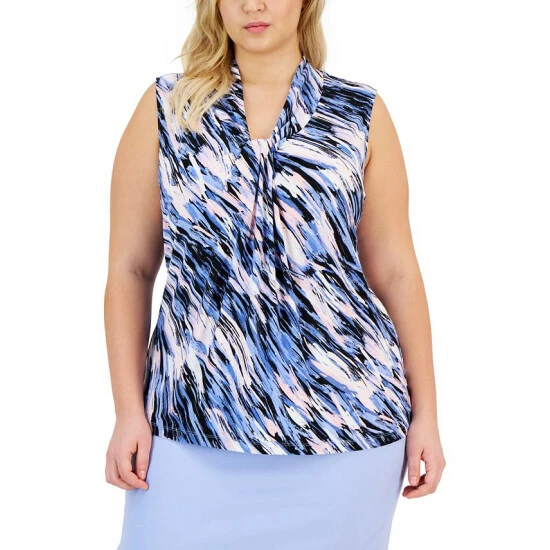 A twisted design updates a classic V-neck on this beautifully printed plus size top from Kasper. A stylish pick that looks great alone or under a blazer.