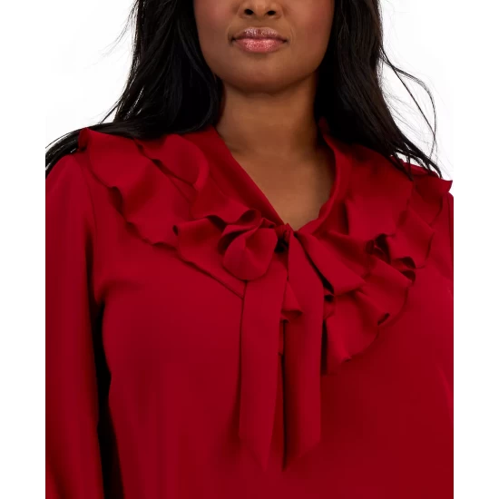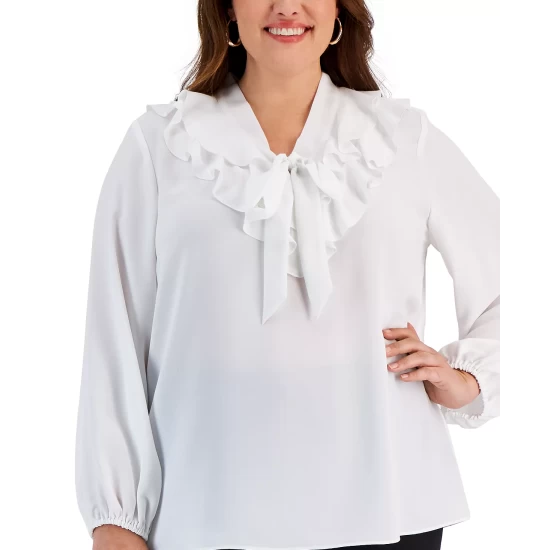 Ravishing in ruffles, this plus size blouse by Kasper will effortlessly elevate your workweek ensemble.