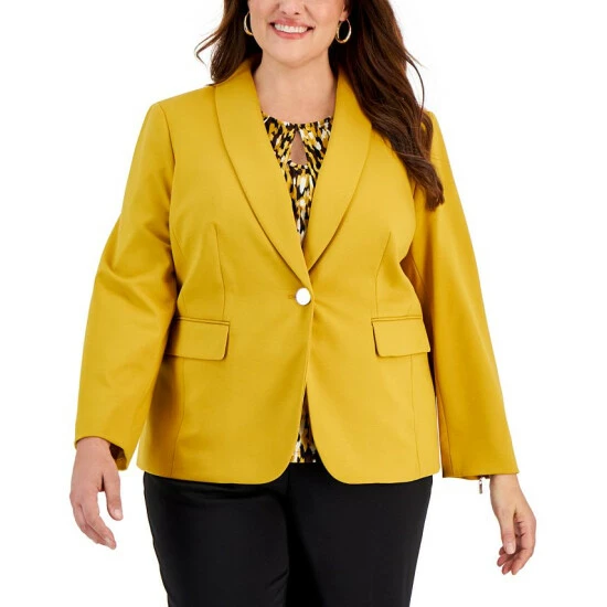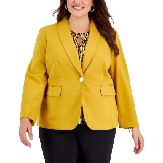 Distinguished and polished style awaits with Kasper’s plus size shawl-collar blazer.