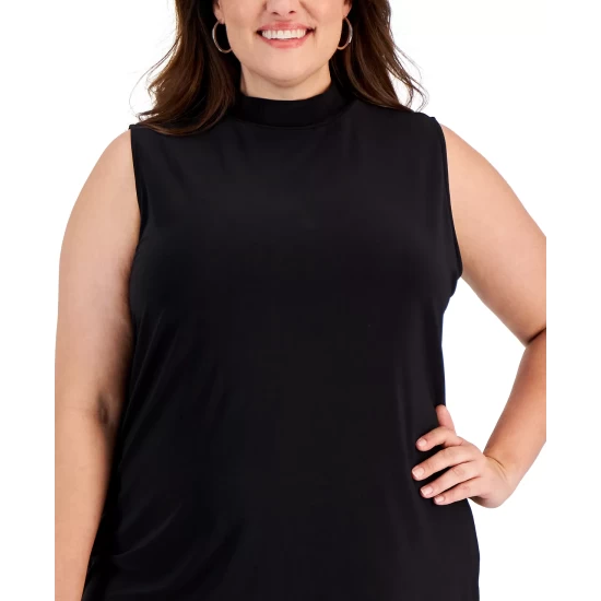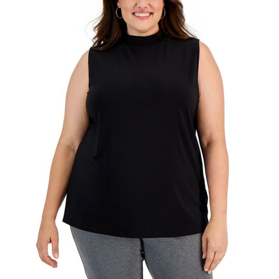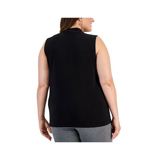 Adding sophistication to the plus size piece by Kasper, the mock neck design is the defining feature of this staple top, perfect as a starting layer to many a workweek ensemble.