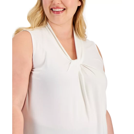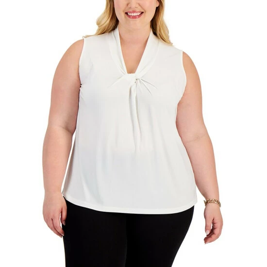 Accented with a knot detail at the neckline, this solid top from Kasper is the perfect addition to your wardrobe.