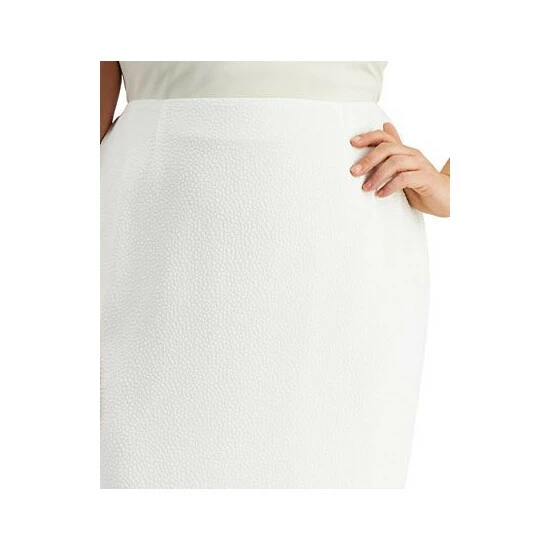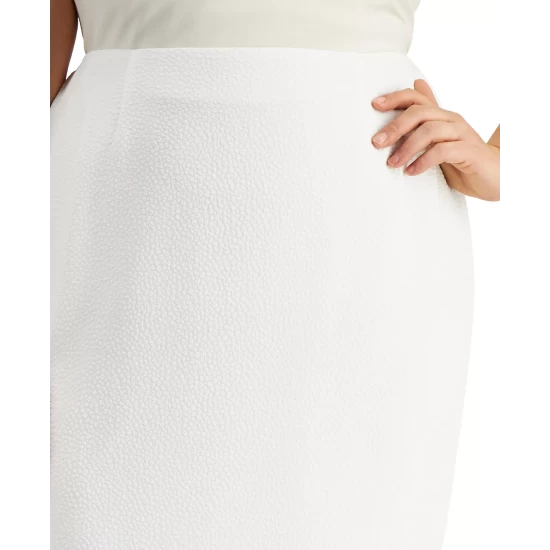 A subtly textured-stretch in the fabric and a pull-on design makes this plus size pencil skirt from Kasper a go-to essential for any busy weekday.