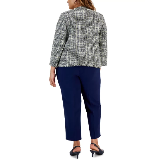 Own the room. Kasper gets it right yet again with this plus size career combo, featuring a tie-neck top paired below a tweed blazer and straight-leg pants.