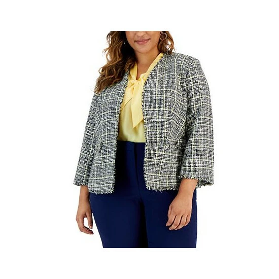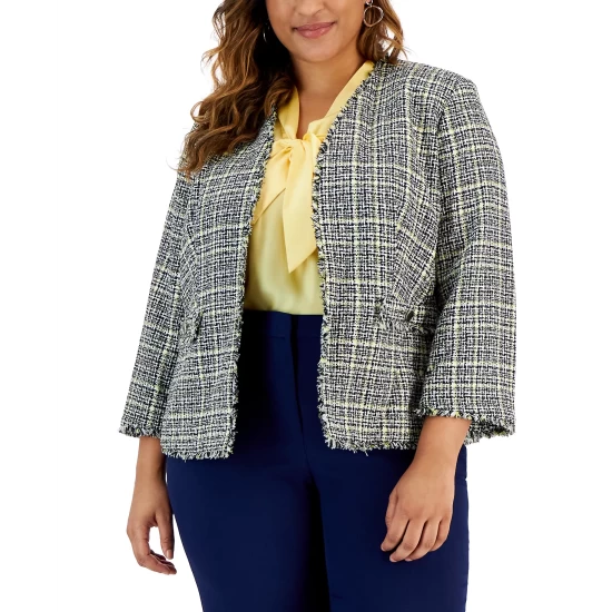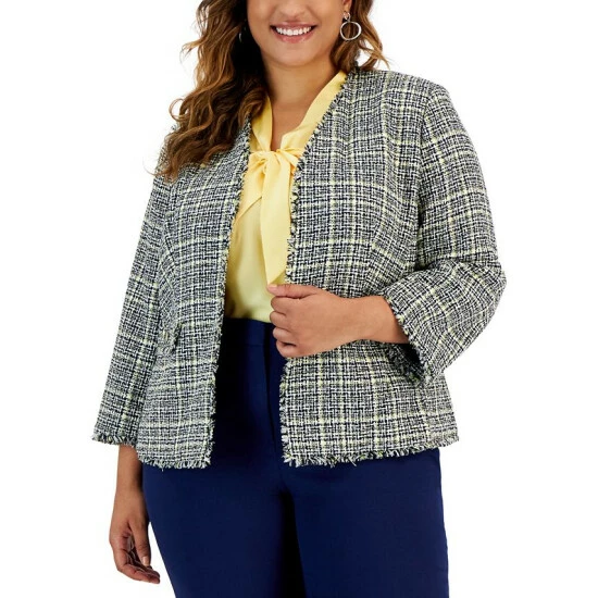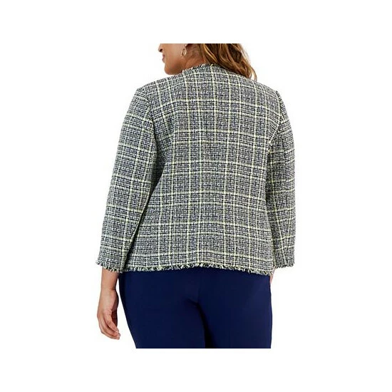 Texture and trim make for an interesting finish with this plus size blazer from Kasper. Its open front lets you create dynamic layers.