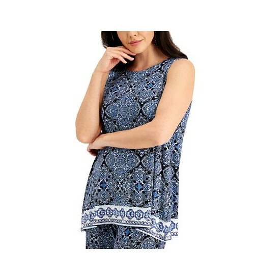 Kasper offers a fresh look for your everyday workwear with this top, featuring a contrast print at the hemline.