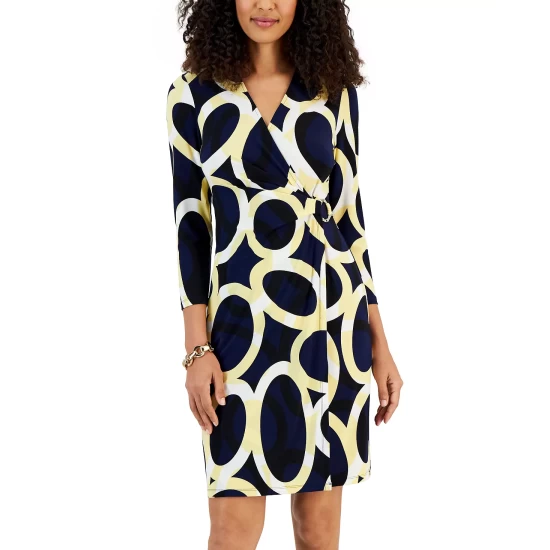 Wrap up a chic look with this printed dress from Kasper.
