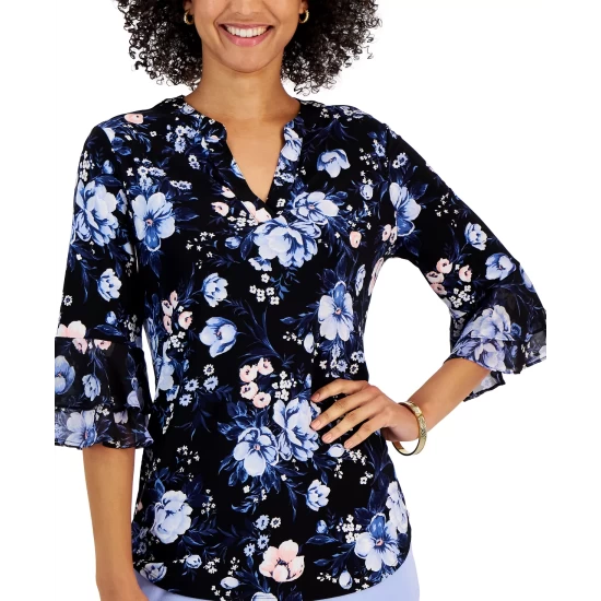 Take your career look in a charming direction with this pretty floral-inspired top from Kasper designed with fluttery cuffs.