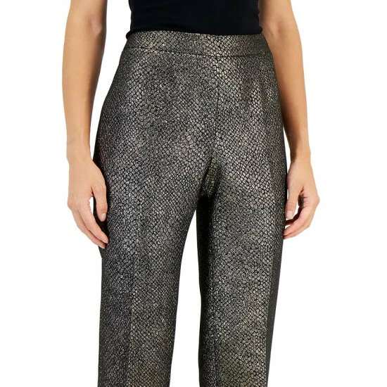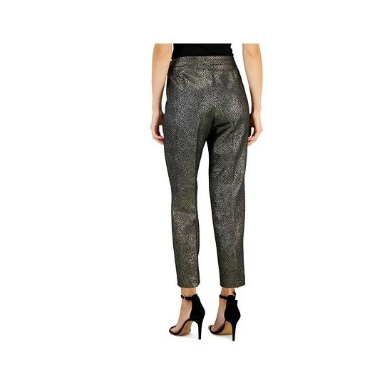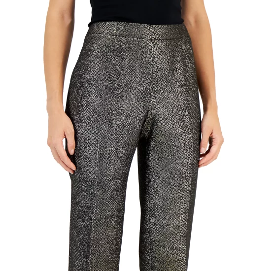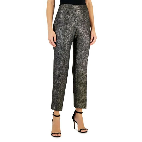 Textured shine in metallic jacquard, Kasper’s slim side-zip ankle pants feature a touch of stretch for a sleek and comfortable career look.