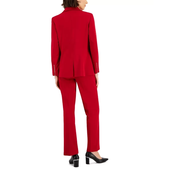 Take on your work week in style and handle whatever comes your way in this women’s one-button jacket, cowlneck top and wide leg pants from Kasper.