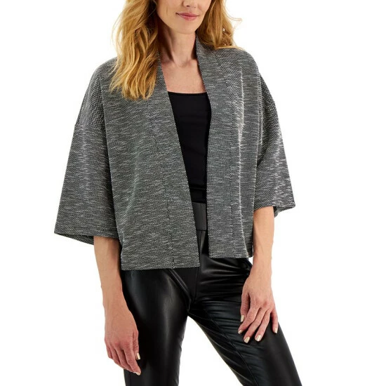 The perfect topper to any look, this 3/4-sleeve cardigan from Kasper features a shawl collar and a versatile open front.