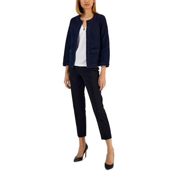 Shake things up in this women’s denim blazer from Kasper, featured with an open front for endless styling options.