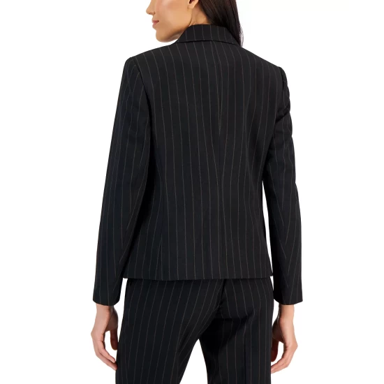 Be boardroom ready with this triple threat blazer by Kasper. Classic one-button style, polished notched collar design and sleek pinstripe finish.