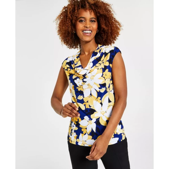 Add a vibrant and contemporary look to your working-week with this printed blouse from Kasper, featuring a timelessly sleek cowlneck design, endless ensembles await.