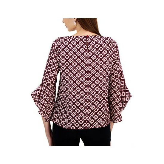Update your wardrobe with this 3/4-sleeve top from Kasper. Ruffles compliment the sleeves, creating a look that is both flowy and feminine.